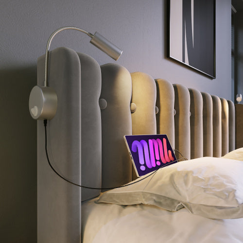 - PRAKTISCHES DESIGN MIT LESELEUCHTE Die Leselampe am Kopfende des Bettes ist perfekt positioniert und spendet angenehmes Licht, ohne Ihren Partner zu stören. Durch die flexible Ausrichtung können Sie das Licht genau dorthin lenken, wo Sie es brauchen, um in Ruhe lesen zu können.