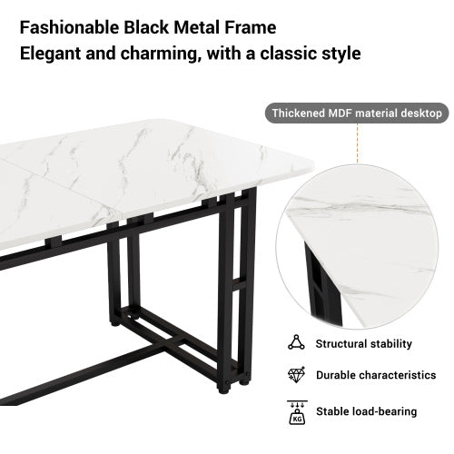 Product Name:140x80cm Leichter Luxus Esstisch,(1-St), Gestell aus Metall Rechteckiger Esstisch aus Moderner Küchentisch mit Metallbeinen für Esszimmer Wohnzimmer,Schwarze Tischbeine