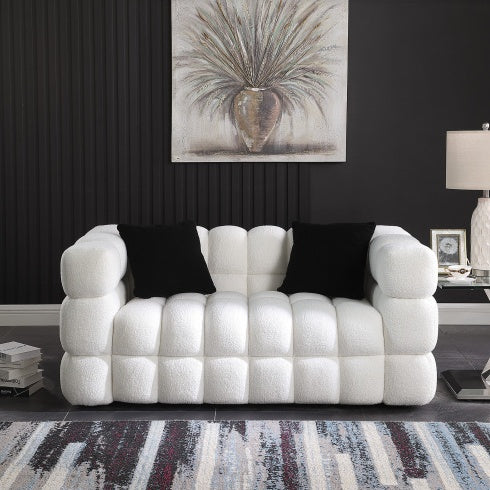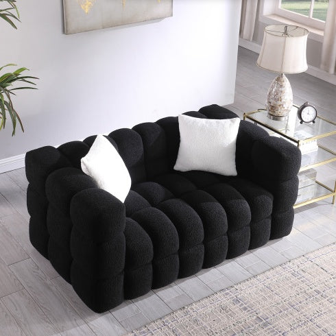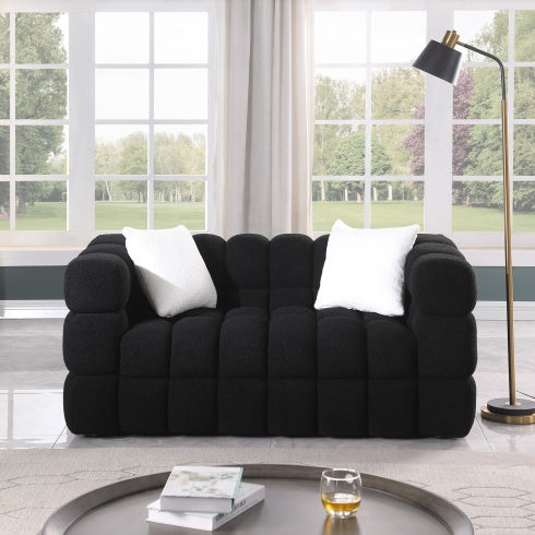 Product Name:62.2length ,35.83" deepth ,human body structure for USA people, marshmallow sofa,boucle sofa ,BLACK color, 2 seater