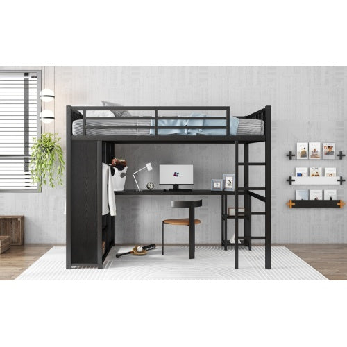 Product Name:Full XL Size Loft Bed Frame with Built-in Wardrobe, Metal Loft Bed with Desk and Storage Shelves, Black