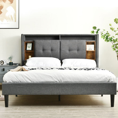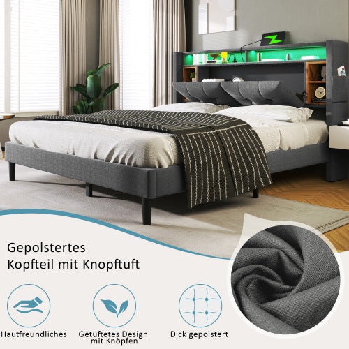 Product Name:Polsterbett Doppelbett Stauraum-Kopfteil Bett mit aufladen USB und LED-Beleuchtung Bettgestell Lattenrost aus Holz,160*200CM Grau(Ohne Matratze)