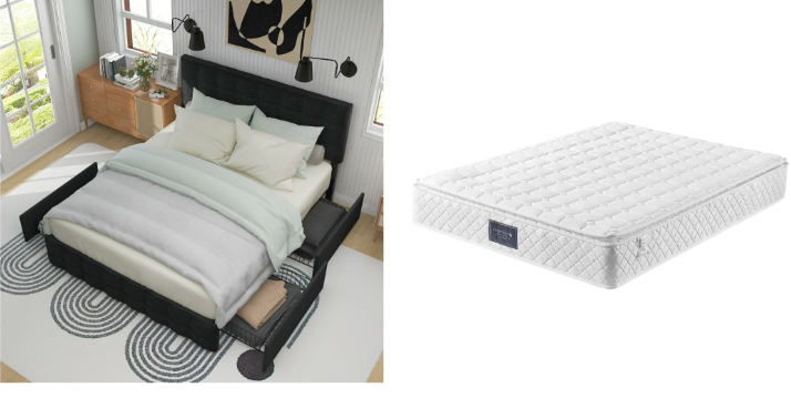 - Speicherdesign:Das Bett ist mit 4 Schubladen mit großem Fassungsvermögen ausgestattet. Zwei Seiten des Bettes sind mit Schubladenschnallen ausgestattet, die es ermöglichen, die Schublade fest am Bett zu befestigen, wenn die Schublade nicht verwendet wird, damit Ihr Schlafzimmer aufgeräumt wird. Die Aufbewahrungsboxen lassen sich dank der Rollen am Boden leicht aus- und einrollen. Sie können auch die Schublade entfernen und große Gegenstände unter dem Bett aufbewahren.