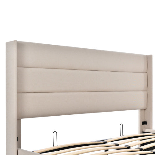 Product Name:Stauraumbett Polsterbett Hydraulisch Doppelbett 140x200cm, Lattenrost aus Holz, Bett mit Lattenrost aus Metallrahmen, Leinen, Beige