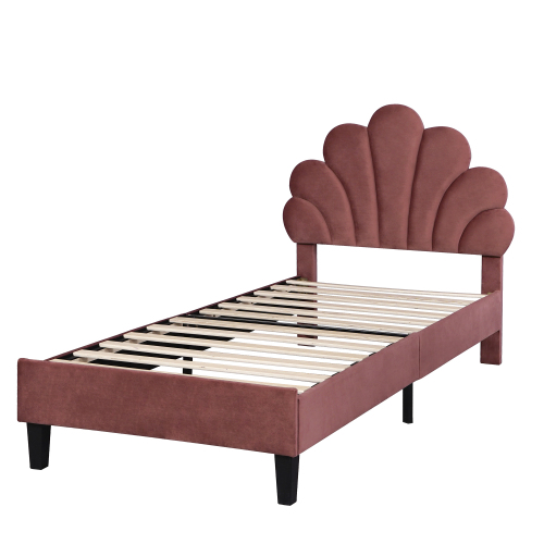 Product Name:Polsterbett Kinderbett 90 x 200 cm, Bettgestell mit Kopfteil in Blumenform und Lattenrost, Teenie-Mädchenbett in hautfreundlichem Samtstoff, Gästebett (Farbe: Bohnenrot)