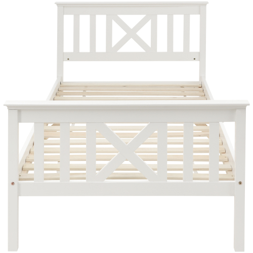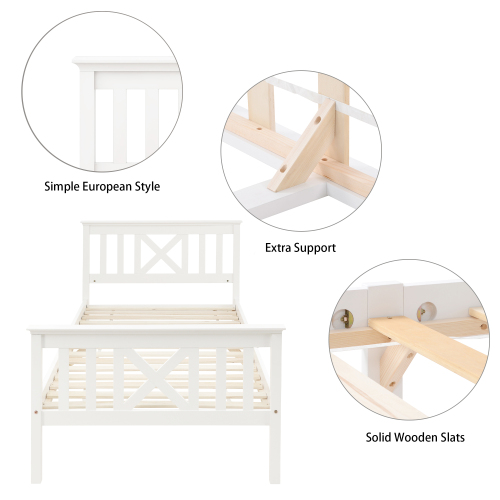 Product Name:Holzbett Einzelbett aus Bettgestell mit Lattenrost Holzbett mit Kopfteil - 90 x 200 cm Massivholz Kinderbett Jugendbett Kiefer massiv Weiß
