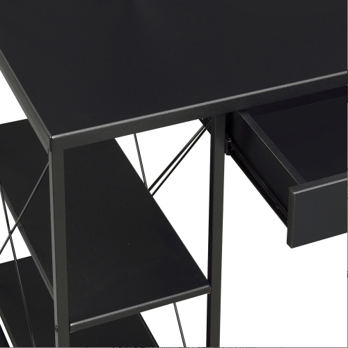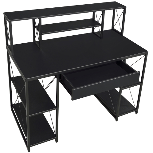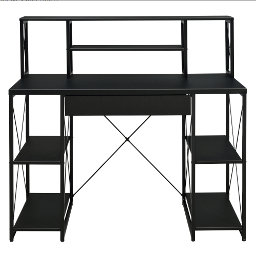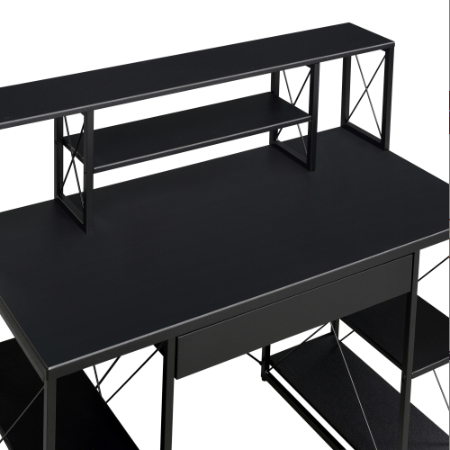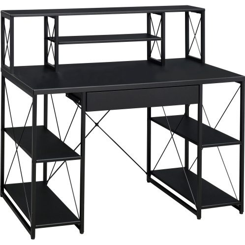 Product Name:Black Office Desk with Open Shelves and Hutch