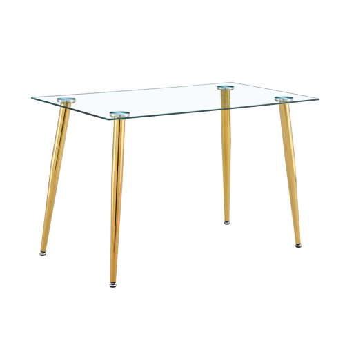 Product Name:TABLE LEG FOR GT-02, GOLDEN LEG , Modern Minimalist Rectangle Glass Dining Table, Transparent Glass Tabletop and Electroplate Metal Legs, Suitable for Kitchens, Restaurants, and Living Rooms