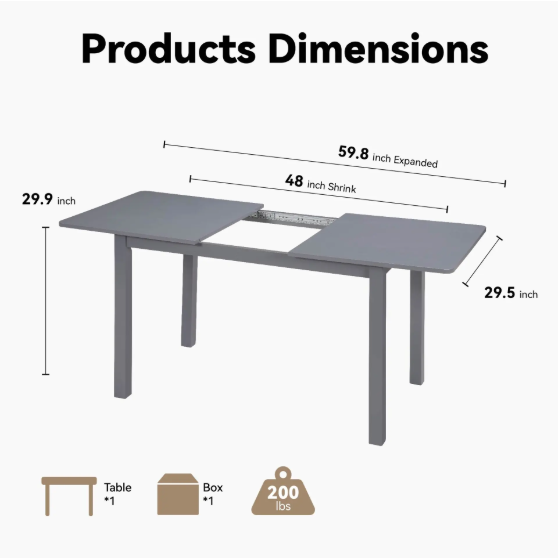 Product Name: 59‘’ Extendable Dining Table, Modern House Dining Room Table for 4-8, Wooden Kitchen Table , Dining Room, Working Office, Home Living Room Furniture for Small Space, Dark Gray