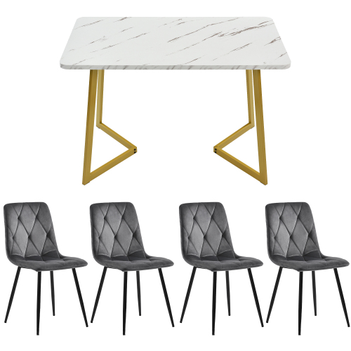 Product Name:Essgruppe,(Set,117×68cm Esstisch mit 4 Stühlen), Rechteckiger Esstisch Moderner Küchentisch Set ,Esszimmerstuhl Dunkelgrau Twill Samt Küchenstuhl,Golden Tischbeine