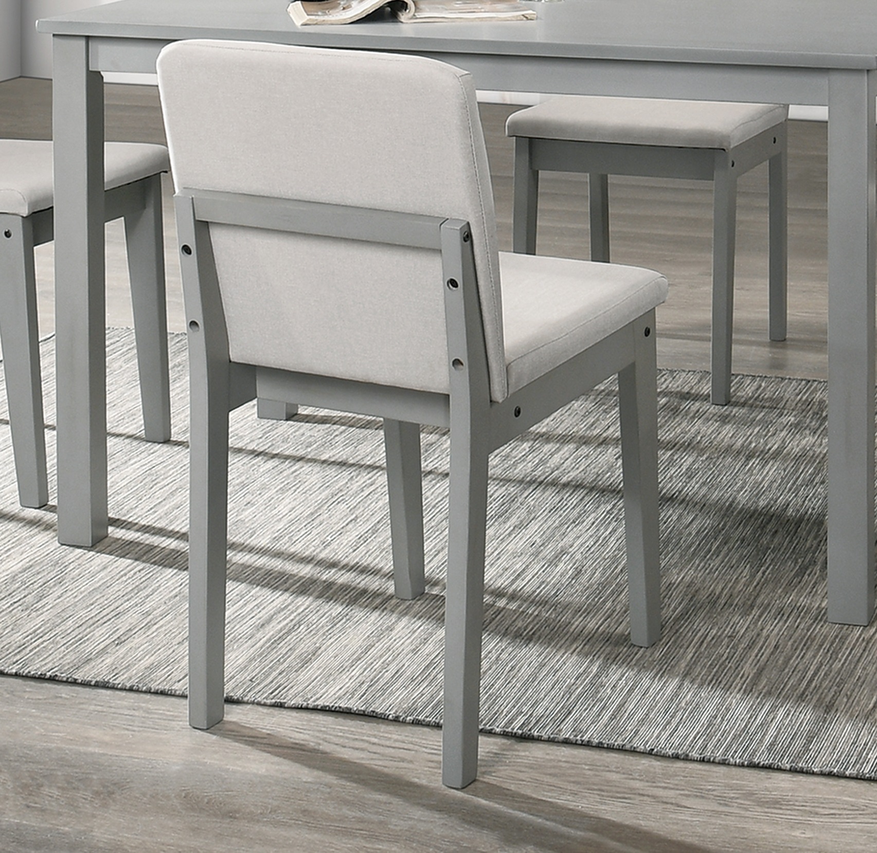 Product Name:Grey Finish 5pc Dining Room Set Dining Table 4x Chairs Beige Fabric Chair Seat Kitchen Breakfast Dining room Furniture Rubberwood Veneer Unique Design