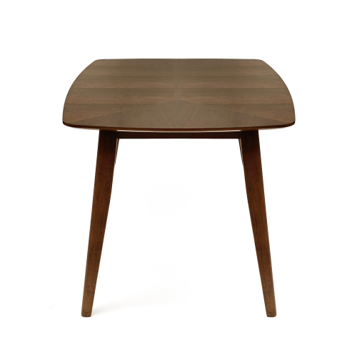 • This sleek dining table is a great addition for any home. With smooth lines and a slightly rounded edge, not only does this dining table look smooth and welcoming, it allows you to eat in peace, not worrying if your table is going to look Shabby while you have friends and family over. Plus, enjoy the added benefit of having a gorgeous finish to boast about