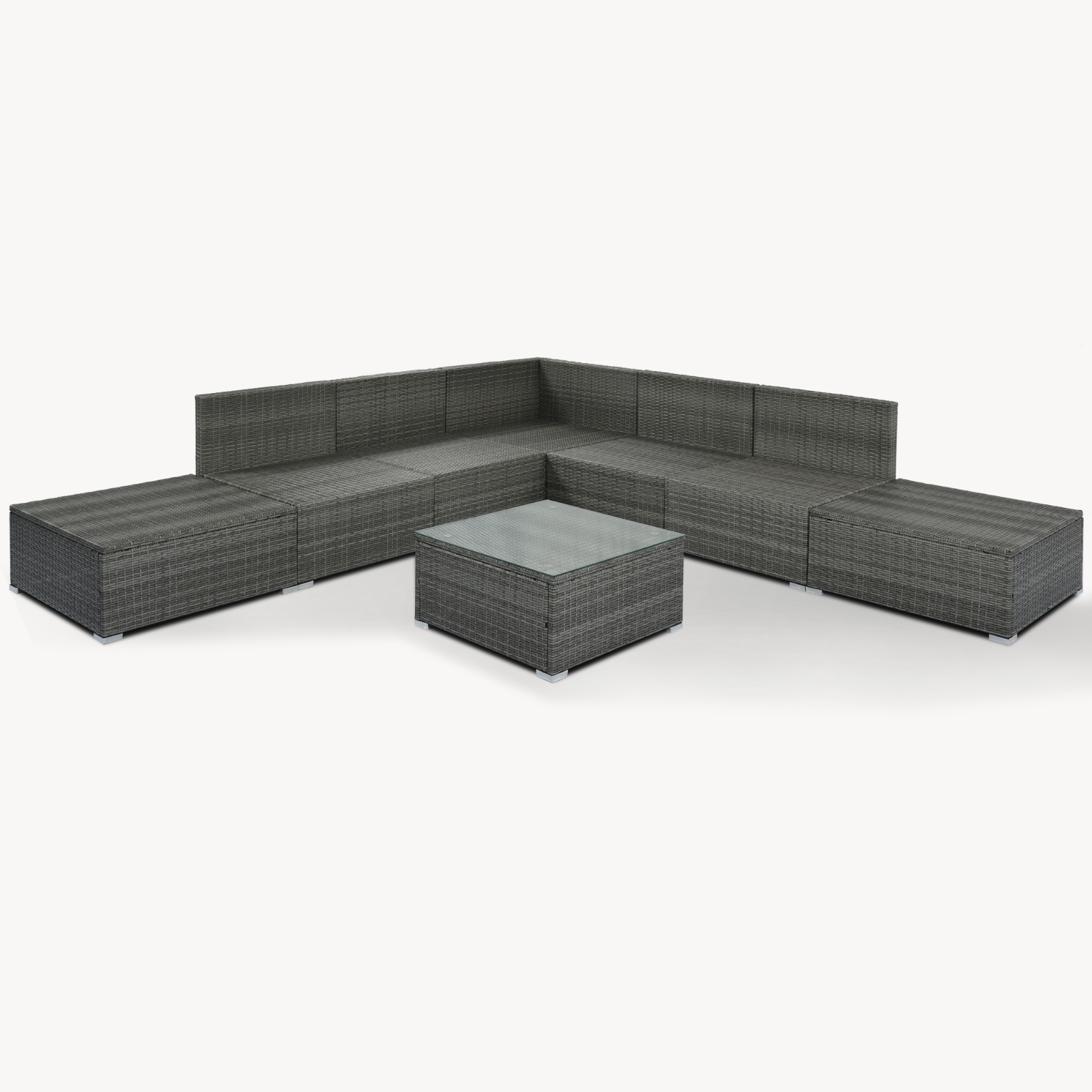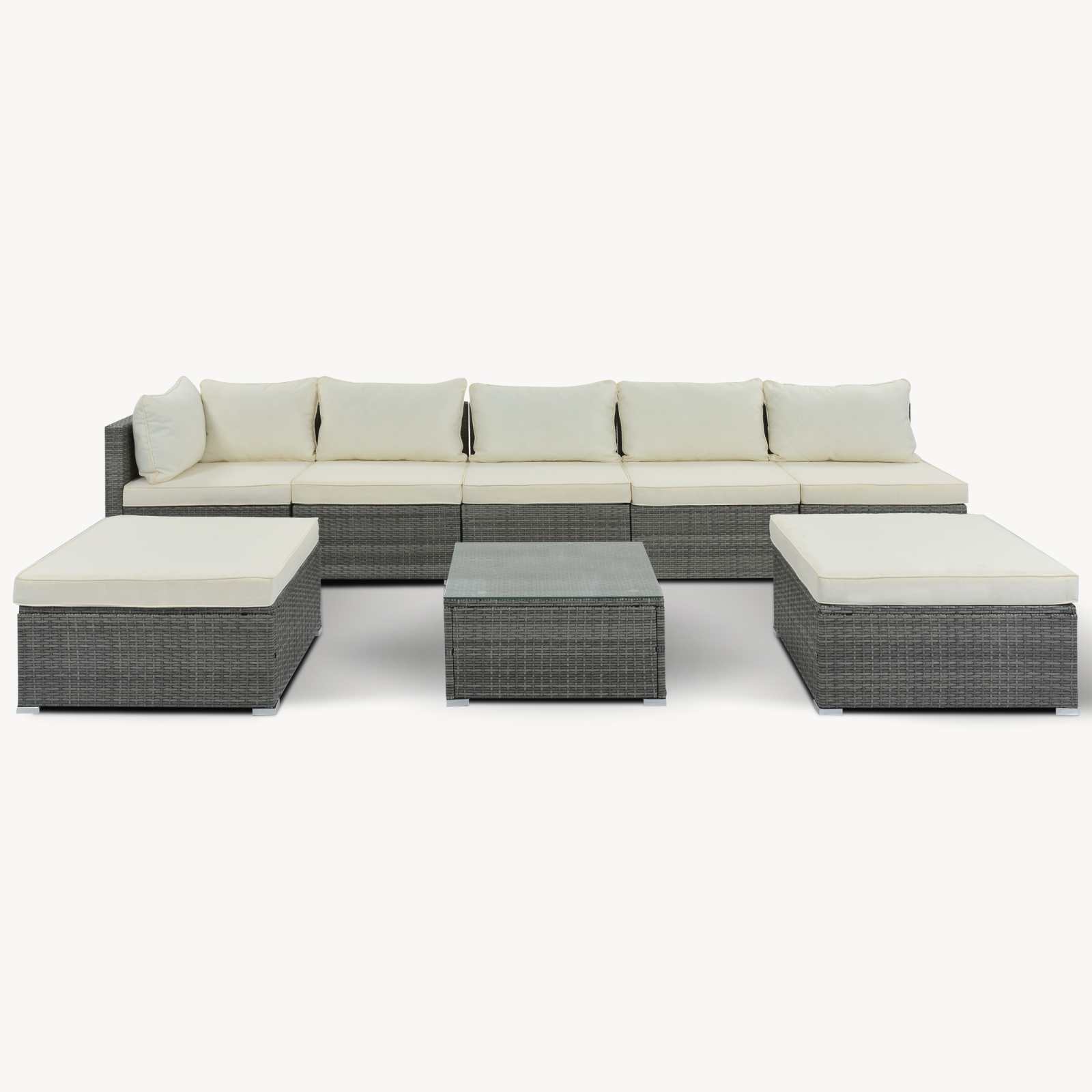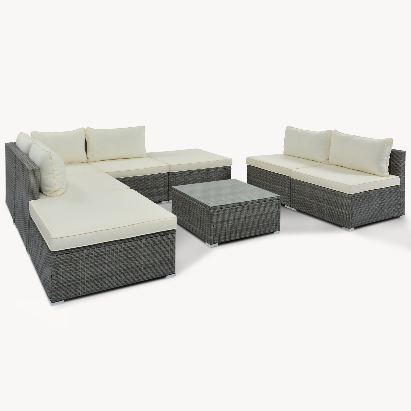 8-Pieces Outdoor Patio Furniture Sets, Garden Conversation Wicker Sofa Set, Single Sofa Combinable, Beige Cushions Gray Wicker