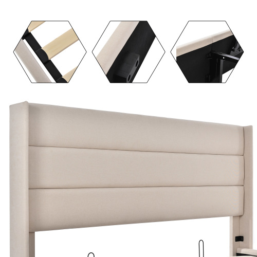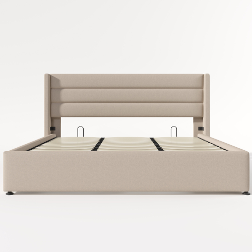 Product Name:Stauraumbett Polsterbett Hydraulisch Doppelbett 180x200cm, Lattenrost aus Holz, Bett mit Lattenrost aus Metallrahmen, Leinen, Beige