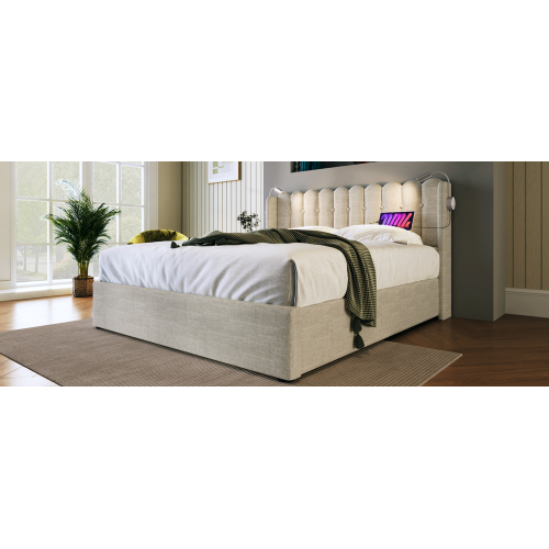 Product Name:Polsterbett Doppelbett Leselicht mit Ladefunktion Kopfteil Stauraum Bettgestell Leinenmaterial Jugendbett 140x200 mit lattenrost,Natürlich(Mit Matratze)