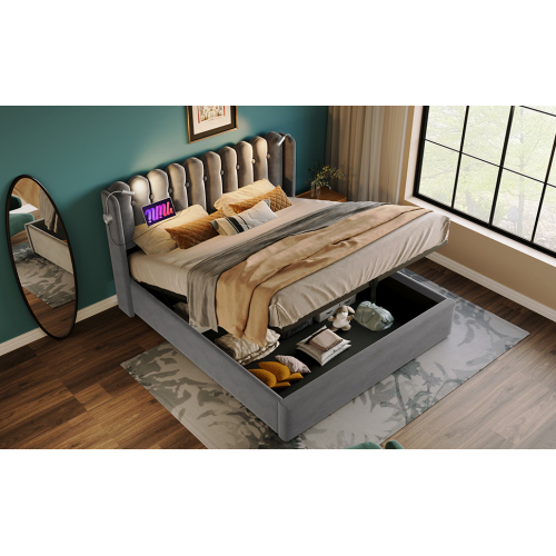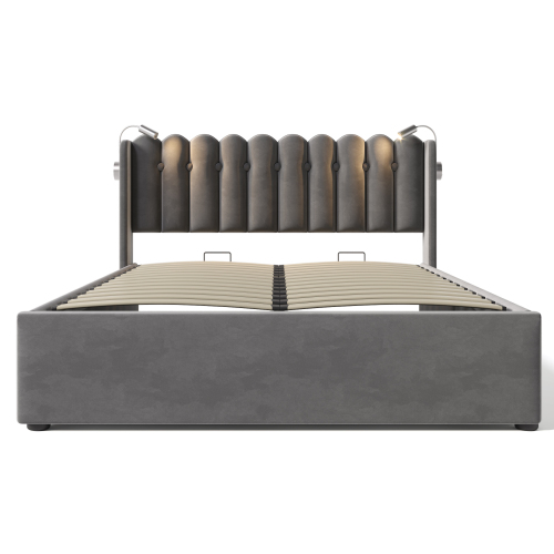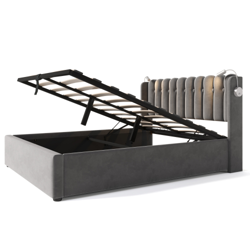 Product Name:Polsterbett Doppelbett Leselicht mit Ladefunktion Kopfteil Stauraum Bettgestell Samt Jugendbett 160x200 mit lattenrost,Grau(Mit Matratze)