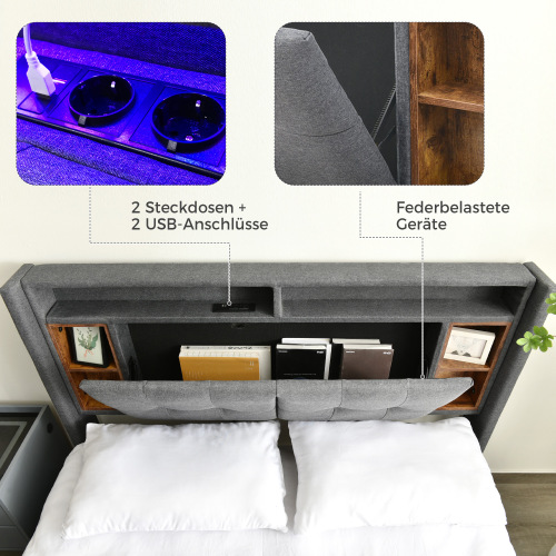 067980AAG Stauraum-Kopfteil Bett mit aufladen USB und LED-Beleuchtung Bettgestell