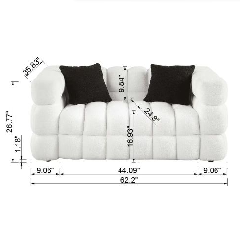 Product Name:62.2length ,35.83" deepth ,human body structure for USA people, marshmallow sofa,boucle sofa ,BLACK color, 2 seater