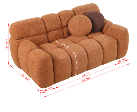 - 64.96 length ,35.83" deepth ,human body structure for USA people, marshmallow sofa,boucle sofa olive green color,3 seater
