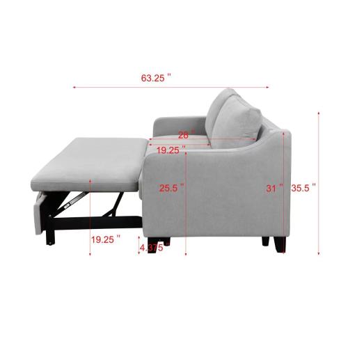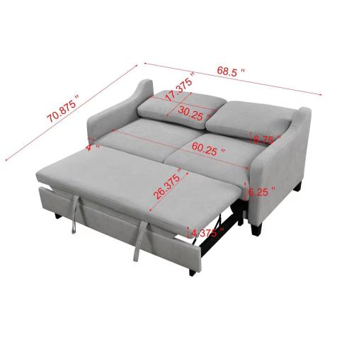 69" 3-in-1 convertible queen sofa bed, modern fabric double sofa bed with pull-out bed, small double sofa with reclining backrest, living room furniture, light grey