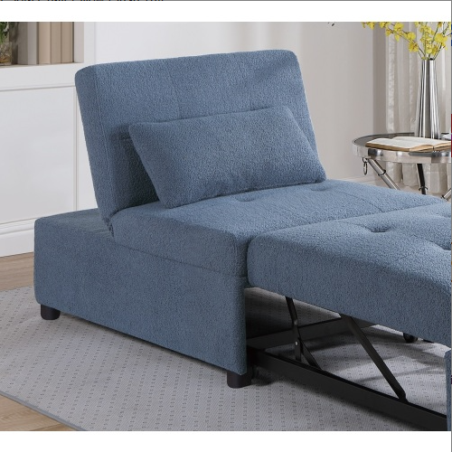 Product Name:Contemporary Blue Gray Sleeper Sofa Chair Pillow Plush Tufted Seat 1pc Convertible Sofa Chair Sherpa Fabric Couch