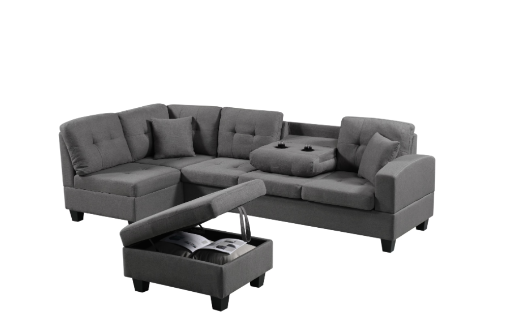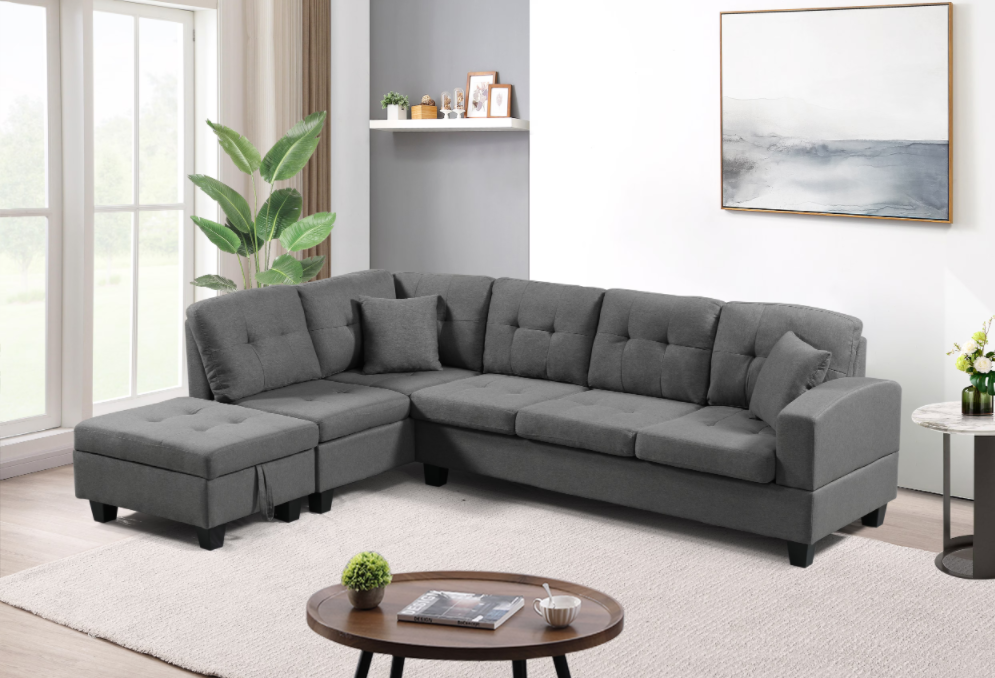 Left Fabric Sofa With Ottoman