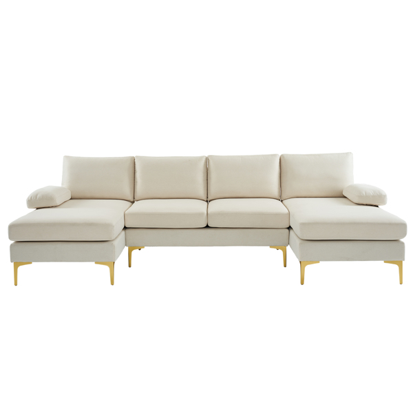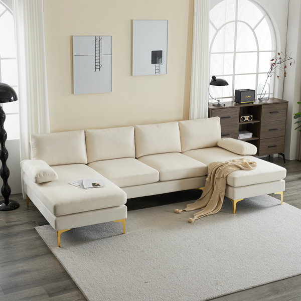 Are you looking for a comfortable sofa for your family? If so,this FCH 280*130*85 U-Shaped 4-Seat Linen Seat Frame Wooden Frame Back Iron Frame Golden Feet Indoor Modular is highly recommended to you. This modern sofa can provide ample seating when guests are over, and easy to lay down on for a nap. The cushions you sit on are nice and firm. You'll never have to worry about sinking in. The more you sit in it the better. So what are you waiting for? Don't hesitate, it's worth buying!