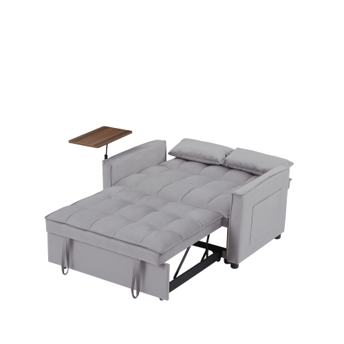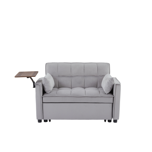 Product Name:Grey Velvet Loveseat Sleeper Sofa Bed with Side Table