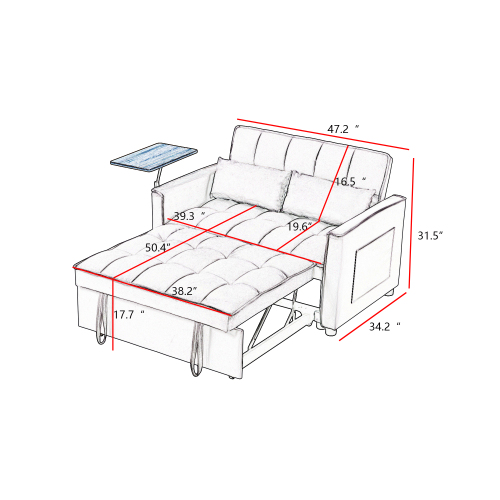 - Armrests with Side Table :This sofa bed armrest design with a 360° rotation side table that provides a flat surface for making your work and life more convenient.