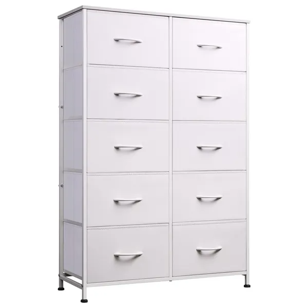 • Bedside Table For Bedroom With 10 Fabric Drawers Storage Cabinet Steel Frame Closet For Clothes Storage Display Cabinet