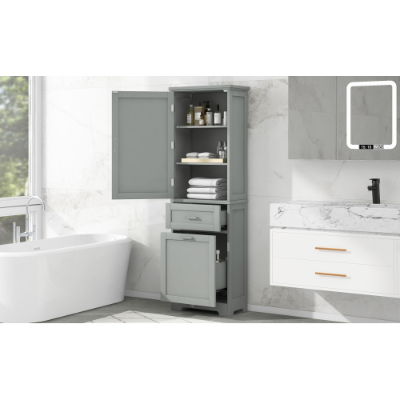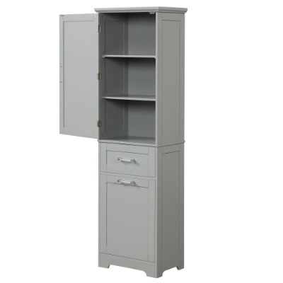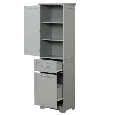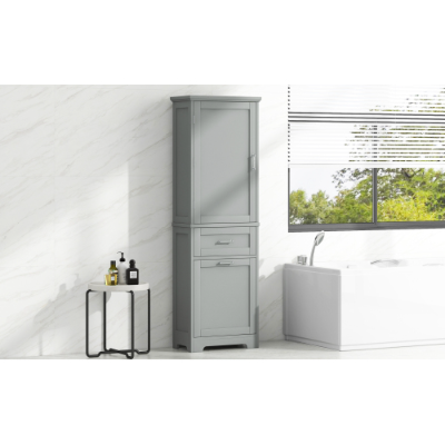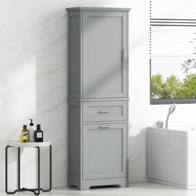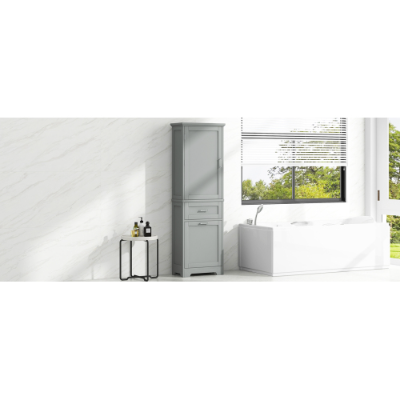 Product Name:Tall Bathroom Storage Cabinet, Freestanding Storage Cabinet with Two Different Size Drawers and Adjustable Shelf, MDF Board with Painted Finish, Grey (Old Sku:WF312730AAE)