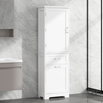 - Material: The storage cabinet is made of high-quality MDF boards with painted finish. Thus, the surface is water-proof, smooth and easy to clean. It is convenient to open or close the drawer and door with acrylic bar handles.